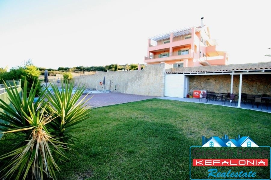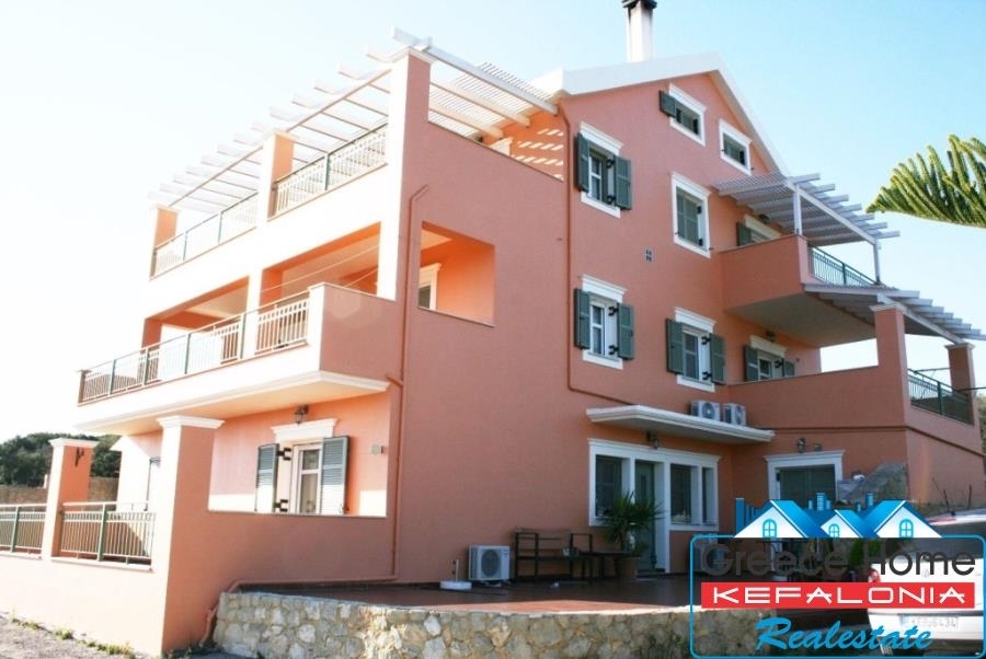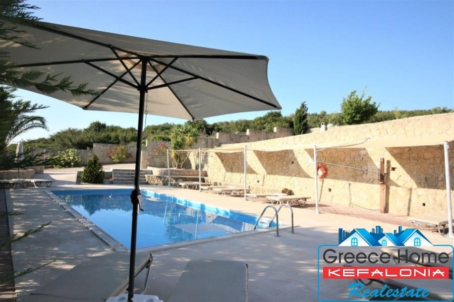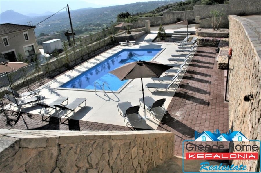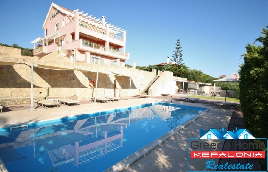 Το ακίνητο προς πώληση, βρίσκεται σε μια εξαιρετική θέση στα Κομποθεκράτα με εκπληκτική θέα στο Αργοστόλι, στη λιμνοθάλασσα του Κουτάβου, στον Αίνο και στο Κάστρο του Αγίου Γεωργίου, που μπορεί κάποιος να απολαύσει από τις μεγάλες βεράντες και τα μπαλκόνια του.Το ακίνητο είναι 540τμ και βρίσκεται εντός οικοπέδου 2.882τμ, περιβάλλεται από μεγάλους πέτρινους τοίχους και χωρίζεται σε 3 επίπεδα δίνοντας ένα πολυτελή χαρακτήρα στο ακίνητο. Το ακίνητο διαθέτει πισίνα με υπέροχη και ανεμπόδιστη θέα καθώς επίσης και υπόστεγο 60τμ με μπαρ και κοινόχρηστη τουαλέτα. Το κτίριο είναι πολλαπλών χρήσεων, καθώς μπορεί εύκολα να αλλάξει χρήση. Μπορεί να γίνει μια πολυτελής κατοικία, ή να χωριστεί σε τρία διαμερίσματα, (ένα σε κάθε επίπεδο), ή μπορεί να χρησιμοποιηθεί όπως στην παρούσα φάση, δηλαδή μικρά διαμερίσματα που μπορούν να ενοικιαστούν για καλοκαιρινές διακοπές ή για όλο τον χρόνο.Το πρώτο επίπεδο είναι 160τμ + 28τμ αποθήκη και περιλαμβάνει 3 διαμερίσματα. Το πρώτο είναι 60τμ και έχει δύο υπνοδωμάτια, σαλόνι, κουζίνα, μπάνιο. Το δεύτερο είναι 55τμ και αποτελείται από ένα υπνοδωμάτιο, σαλόνι, κουζίνα, μπάνιο και το τρίτο είναι επίσης 45τμ και αποτελείται επίσης από ένα υπνοδωμάτιο, σαλόνι, κουζίνα και μπάνιο. Τέλος, στην αποθήκη των 28τμ είναι τοποθετημένοι οι λέβητες με την κεντρική θέρμανση. Εντυπωσιακή δε είναι μια τσιμεντένια δεξαμενή που χωράει 70 κυβικά μέτρα βρόχινο νερό.Το δεύτερο επίπεδο είναι 120τμ και περιλαμβάνει 3 διαμερίσματα, 40τμ το καθένα, με σαλόνι, κουζίνα, μπάνιο και μια αποθήκη κάτω απο την σκάλα 3.5τμ.Το τρίτο επίπεδο περιλαμβάνει δύο διαμερίσματα. Το πρώτο είναι 173τμ (μαζί με μια σοφίτα) και αποτελείται από 3 υπνοδωμάτια, σαλόνι με τζάκι, τραπεζαρία, κουζίνα, 2 1/2 μπάνια, αποθήκη, πλυσταριό. Το δεύτερο είναι ένα μικρό στούντιο 33τμ.Από το 2014 το ακίνητο λειτουργεί, με πολύ επιτυχία, σαν επιχείρηση ενοικίασης διαμερισμάτων για καλοκαιρινές διακοπές. Αν και πολύ κοντά στο Αργοστόλι (μόλις 5 λεπτά με το αυτοκίνητο) το ακίνητο αυτό έχει την απαραίτητη ιδιωτικότητα και απομόνωση.Τα Κομποθεκράτα απέχουν μόλις 6 χλμ από το Αργοστόλι και απολαμβάνουν πανοραμική θέα στον Κόλπο του Αργοστολίου, την πεδιάδα της Κρανιάς και τον Αίνο. Αποτελεί εξαιρετική επιλογή για μόνιμη αλλά και εποχική διαμονή καθώς βρίσκεται μόλις μια ανάσα από το Αργοστόλι αλλά και απολαμβάνει την ησυχία της εξοχής. Διαθέτει αρκετά καταλύματα. Πλησιέστερες παραλίες: Μακρύς Γιαλός, Πλατύς Γιαλός.